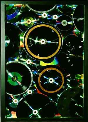 "Gramophone" 07/01/2001 97x68x5 - 20kg Disques vinyle, disques durs, disques optiques numériques, CD Rom, plateaux de platines, couverture thermique spatiale.