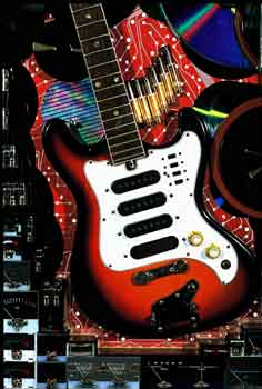 Vue-mètres, jacks, vidéodisques, vynile,CD-Rom, disques durs, bobines, circuit souple, haut-parleur, fil électrique, waffer.